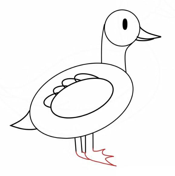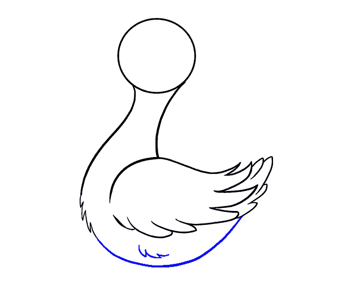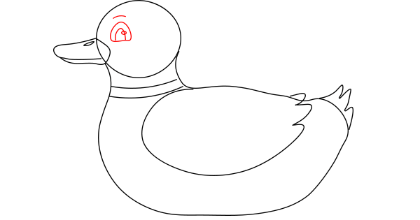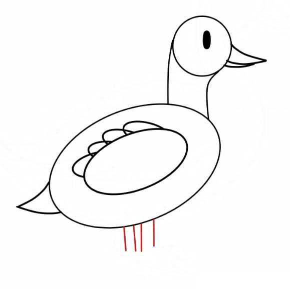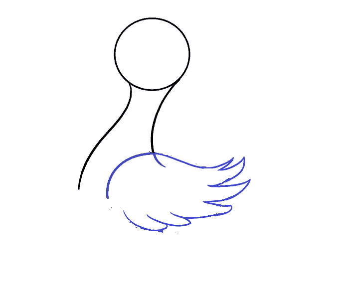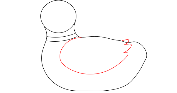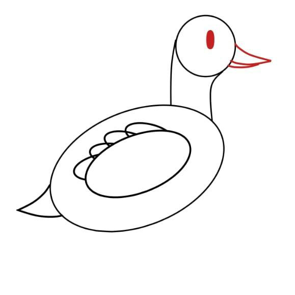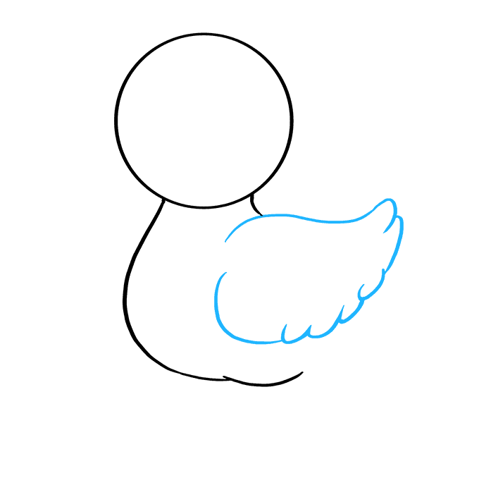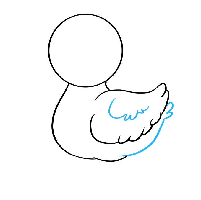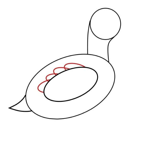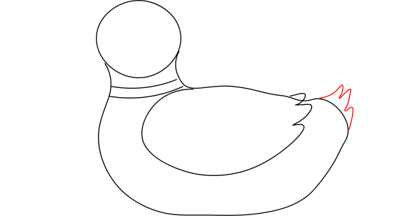 Disegna un ovale per fare le ali e disegna linee curve per fare le piume per l’anatra.
