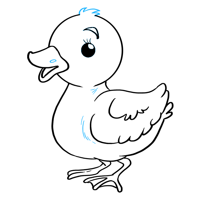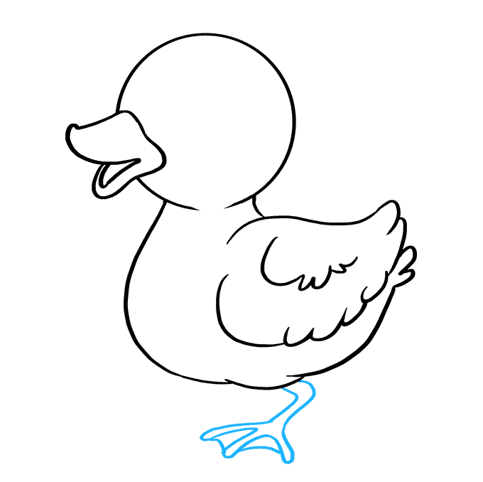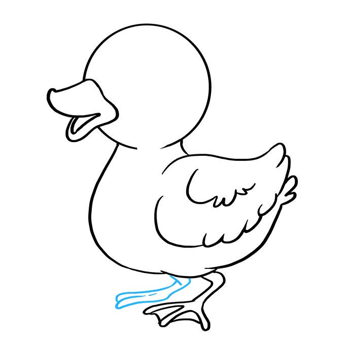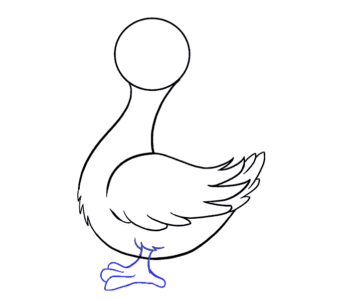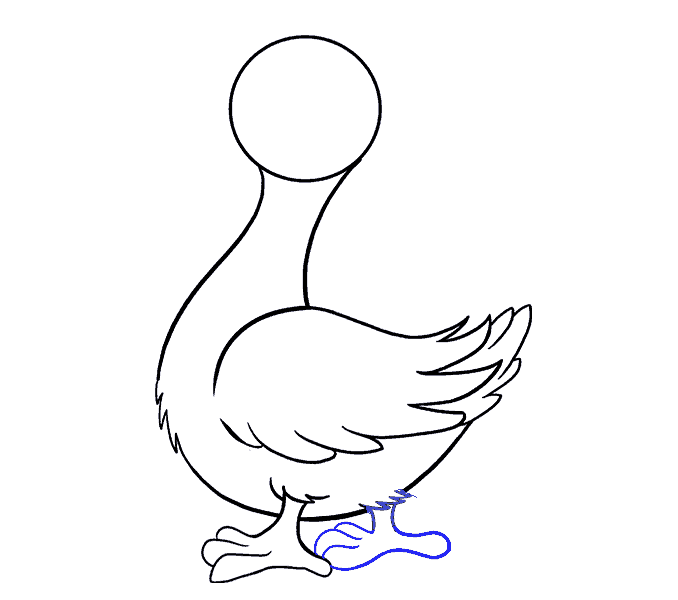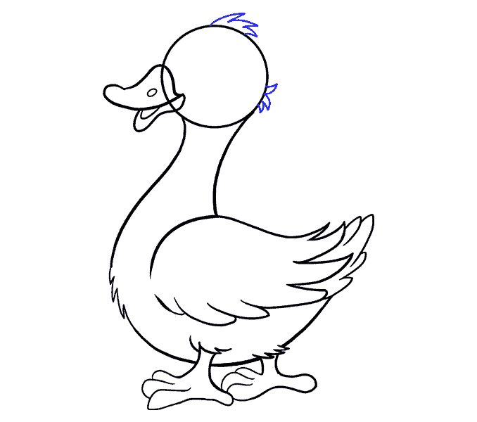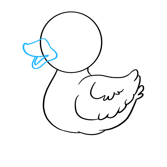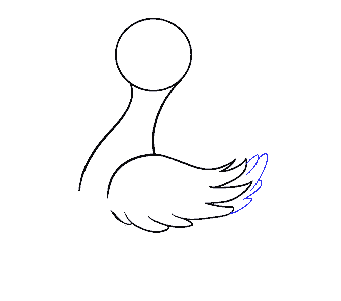 Disegna un ovale per fare le ali e disegna linee curve per fare le piume per l’anatra.