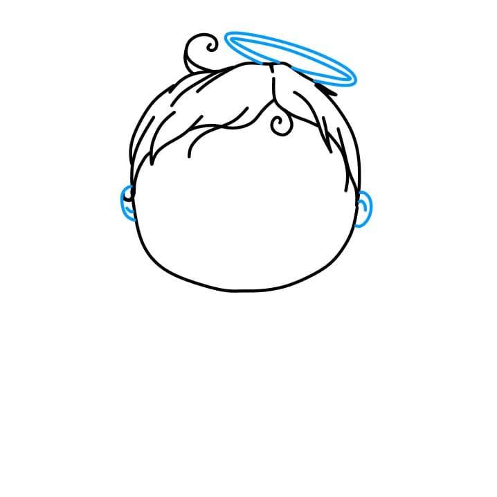 Quindi, disegni i capelli e cerchi sopra la testa
