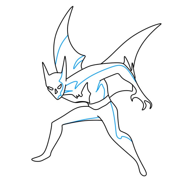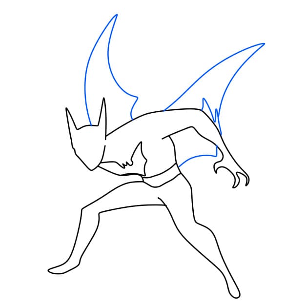 Passo 7: Disegna più ali e pinne che crescono sulle mani di Batman