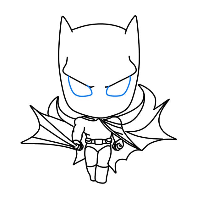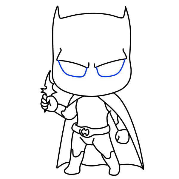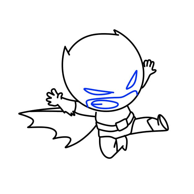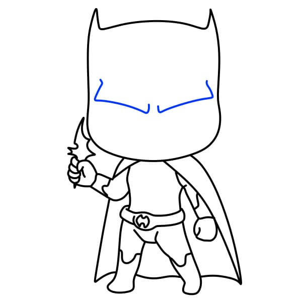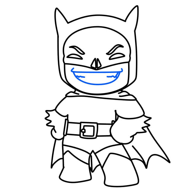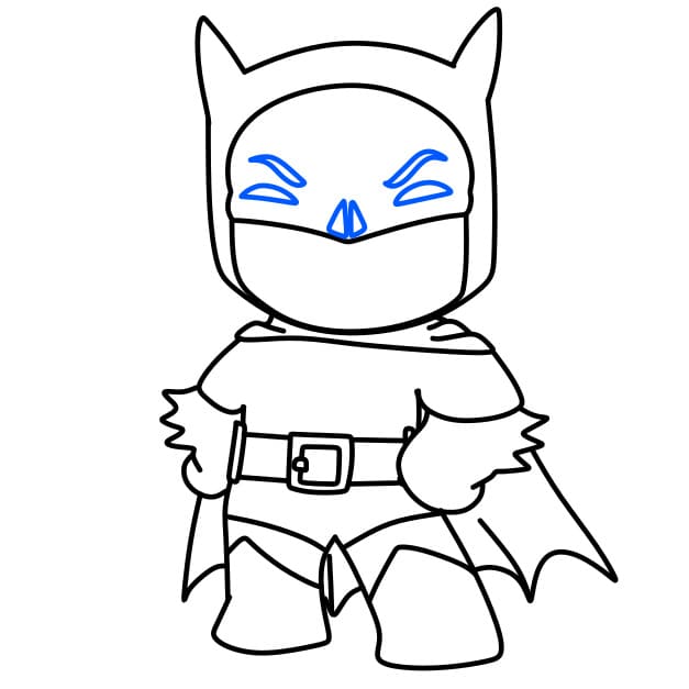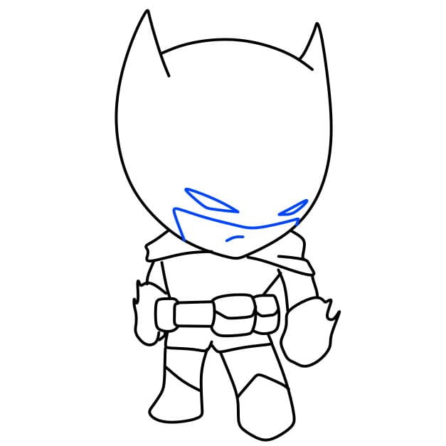 Passo 7 : Successivamente, disegna gli occhi e la bocca di Batman