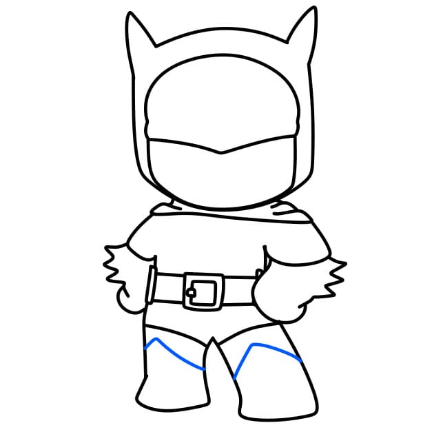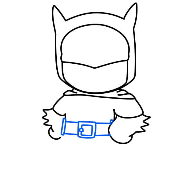 Passo 2: Successivamente, disegna il corpo e la cintura di Batman