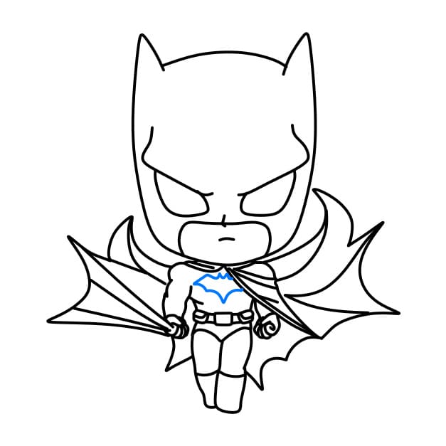 Passaggio 6: disegna un simbolo di Batman davanti al suo petto