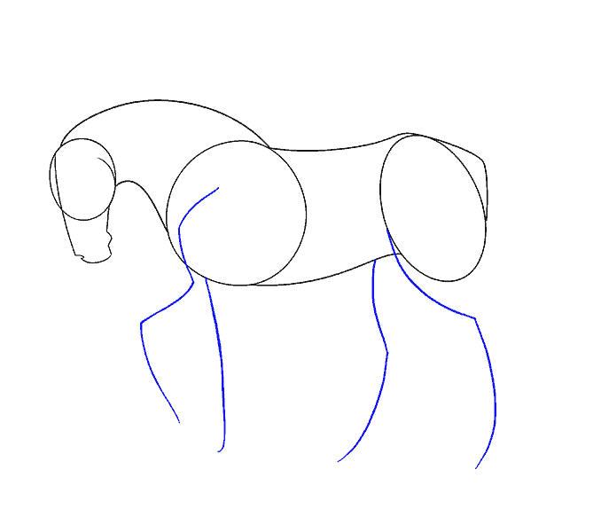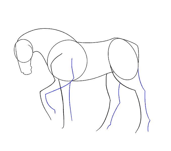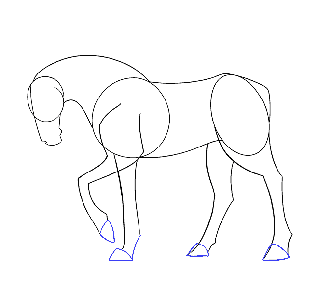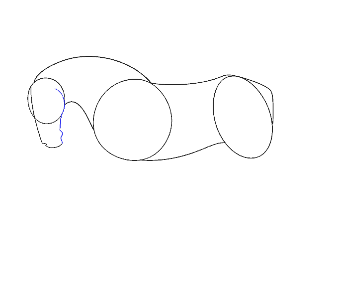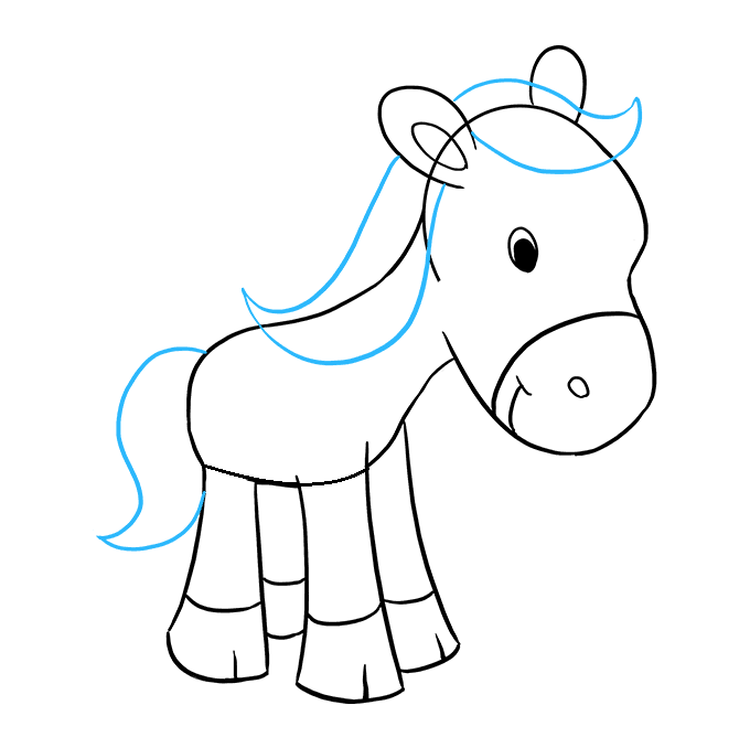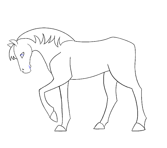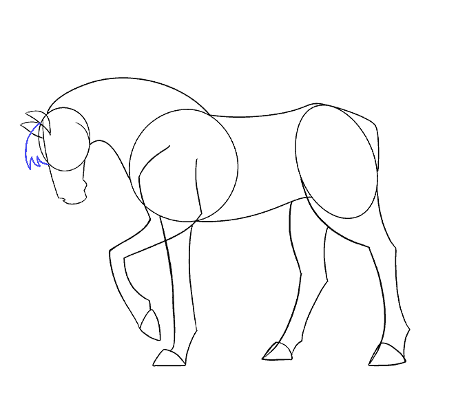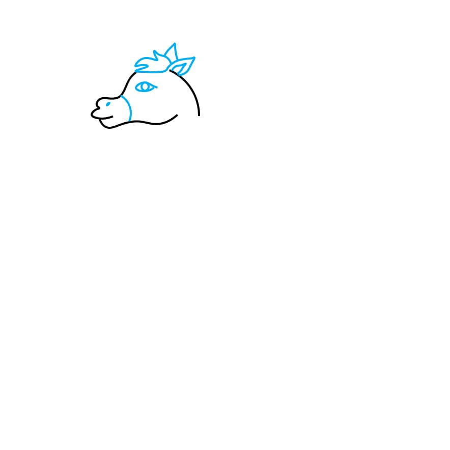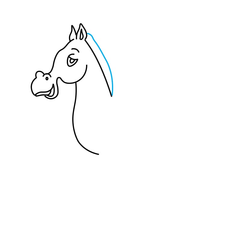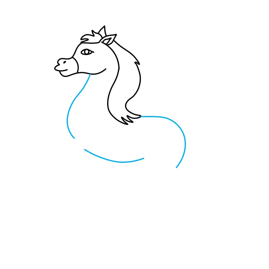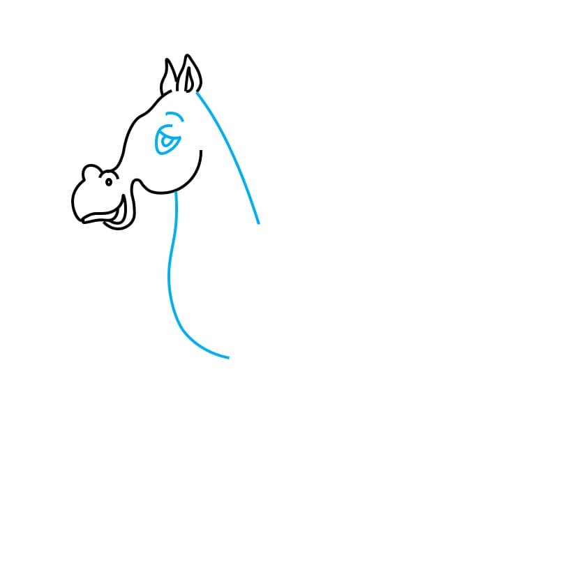 Il prossimo è disegnare gli occhi e disegnare le curve come mostrato per creare il collo di un cavallo