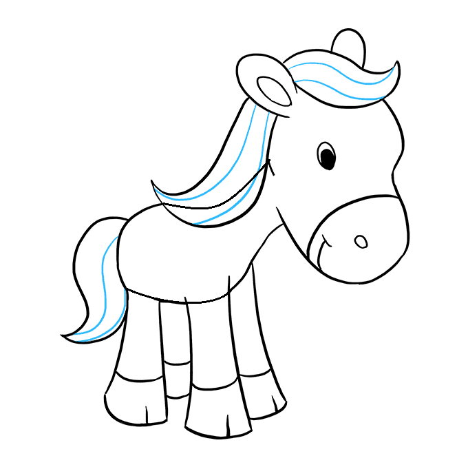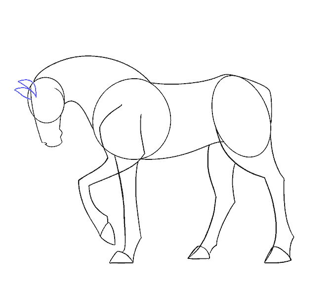 Il prossimo è disegnare occhi e orecchie per il cavallo