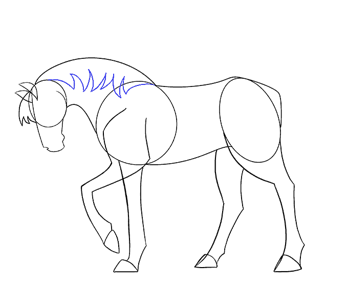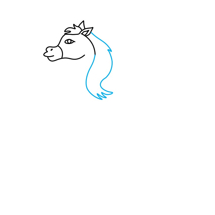 Disegna la criniera di un cavallo come una linea seghettata sul collo.