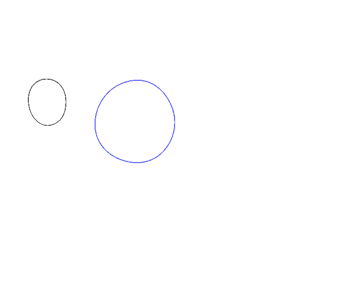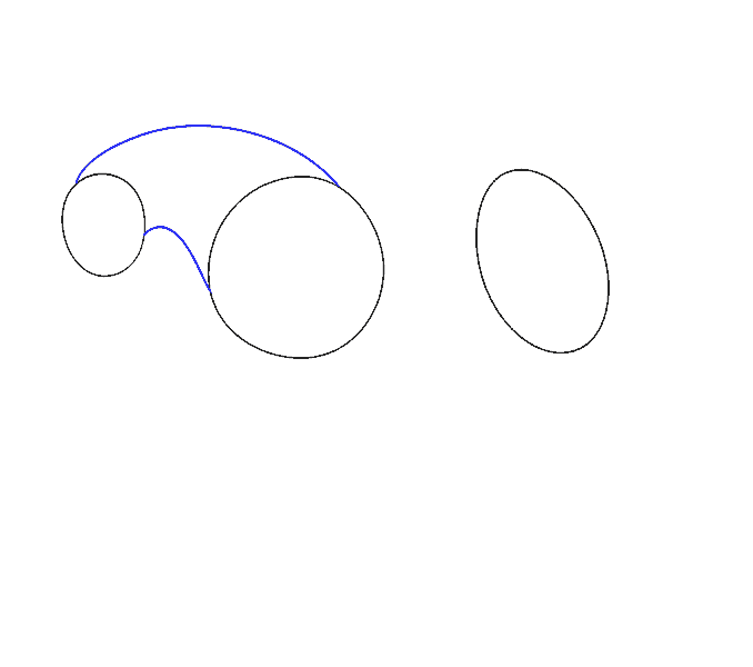 Collega l’ovale al centro con quello a destra. Aggiungi un triangolo curvo all’esterno dell’ovale destro.