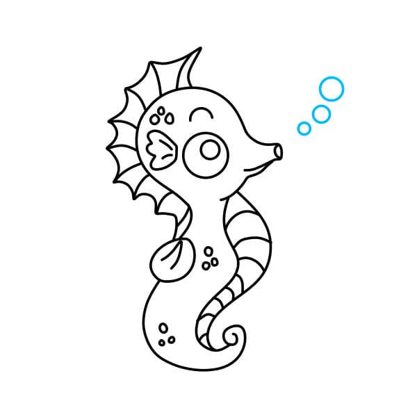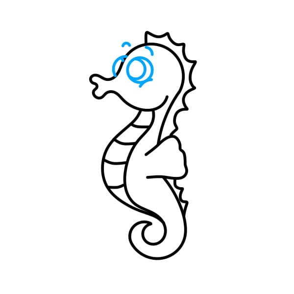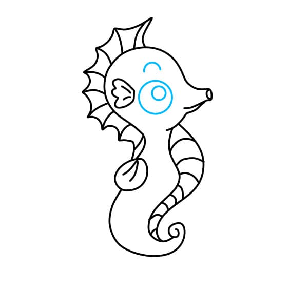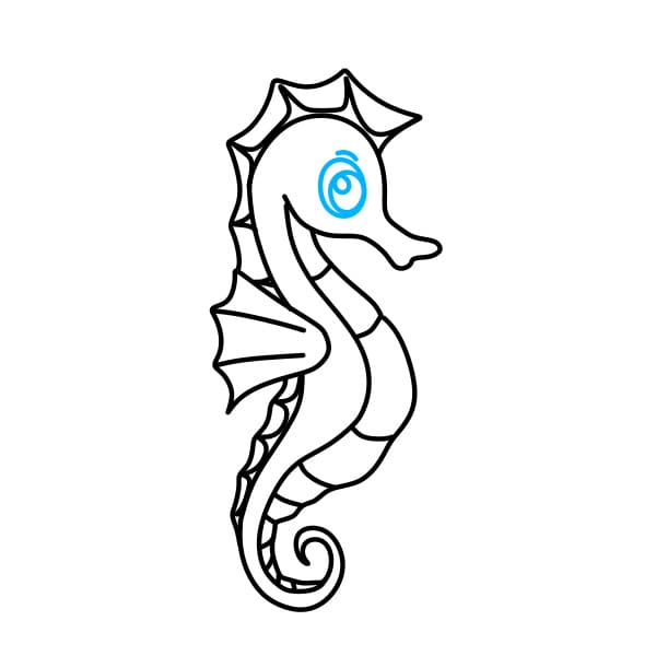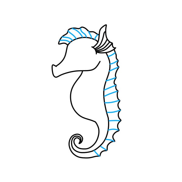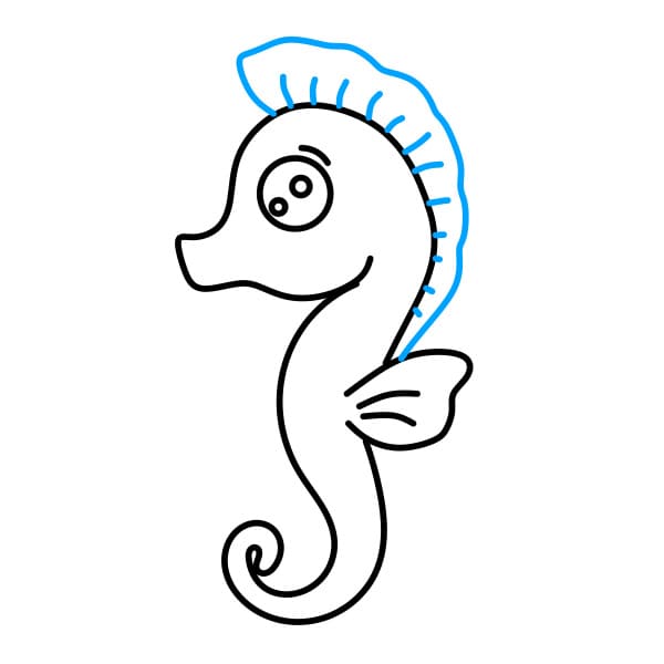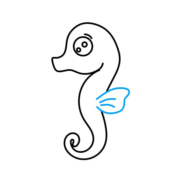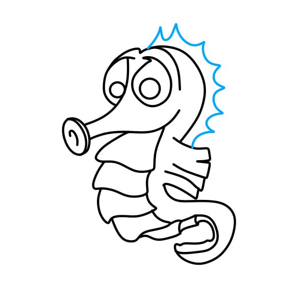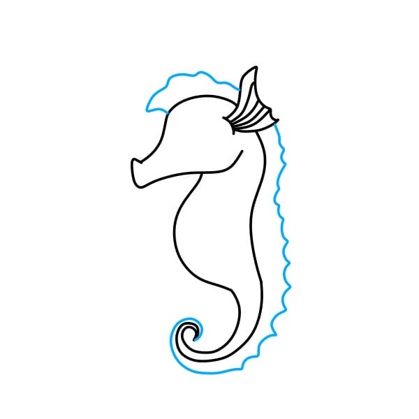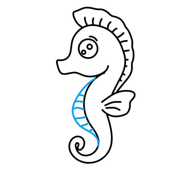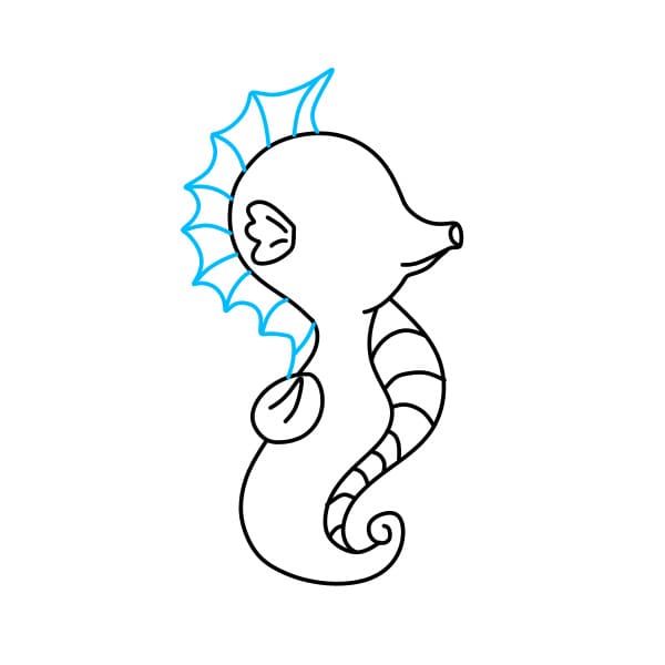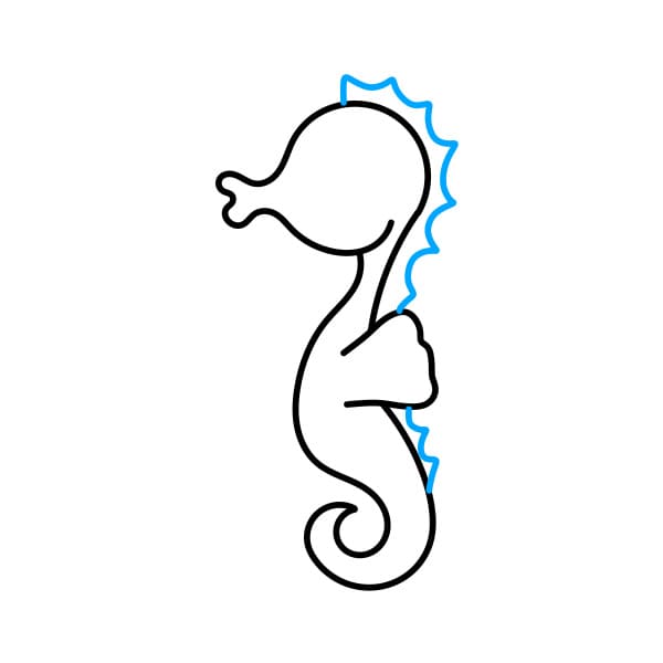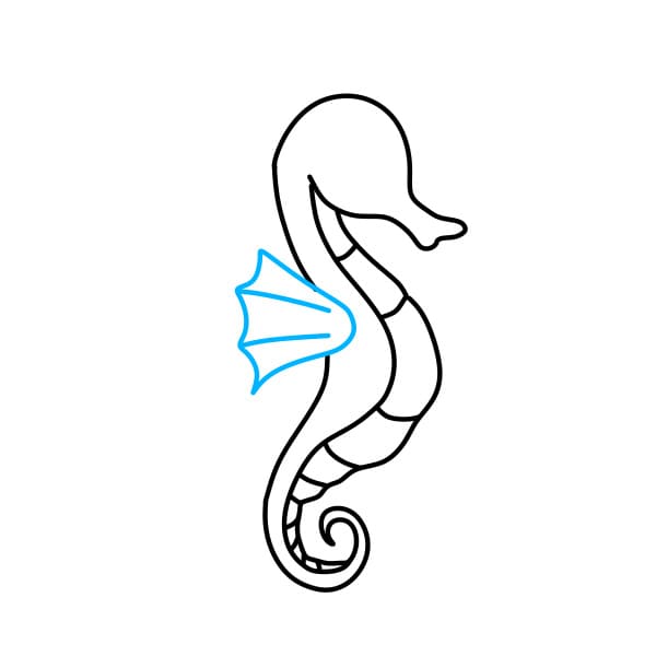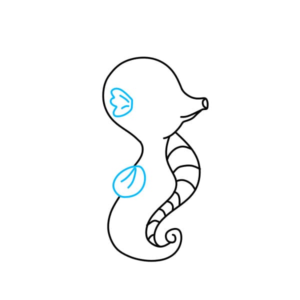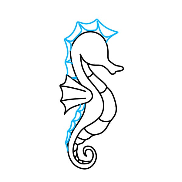 Passaggio 3: disegnare la pinna sul corpo e sulla schiena per il cavalluccio marino
