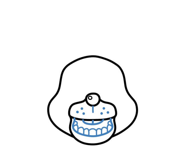 Disegna la bocca, disegnando linee rette per formare la forma dei denti
