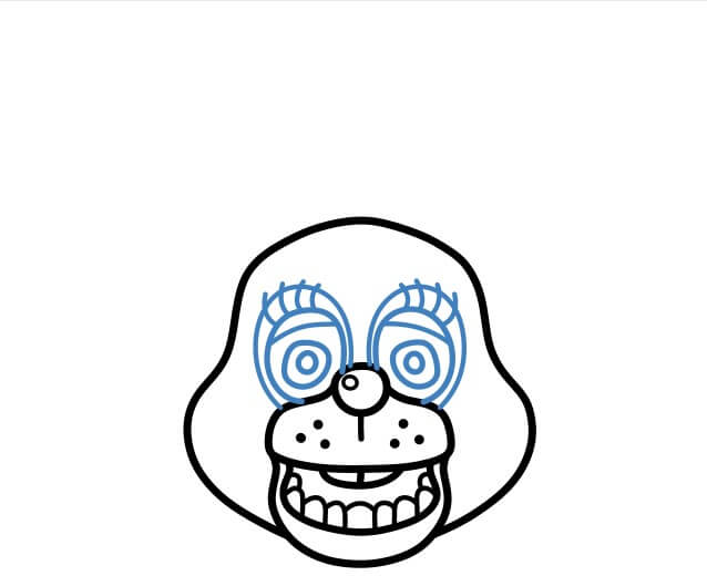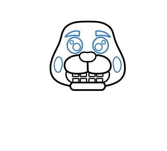 Disegna occhi, sopracciglia e due cerchi su entrambe le guance