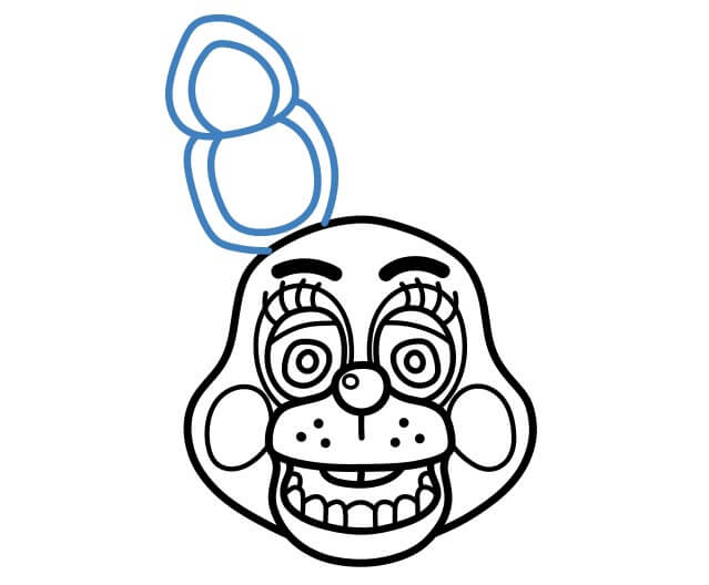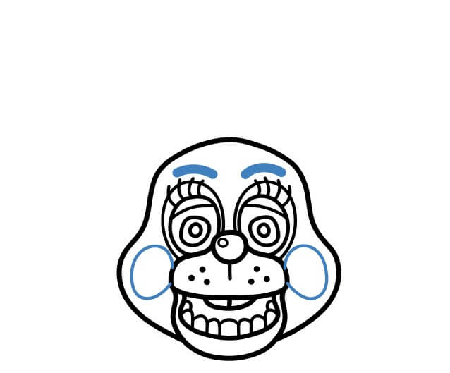 Disegna le sopracciglia e due cerchi su entrambe le guance