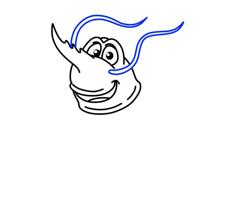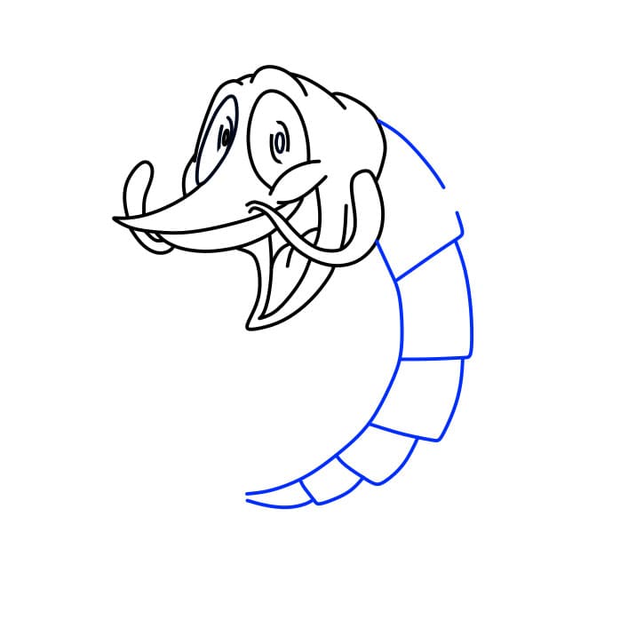Passo 1: Per prima cosa, disegna il sorriso dei gamberetti