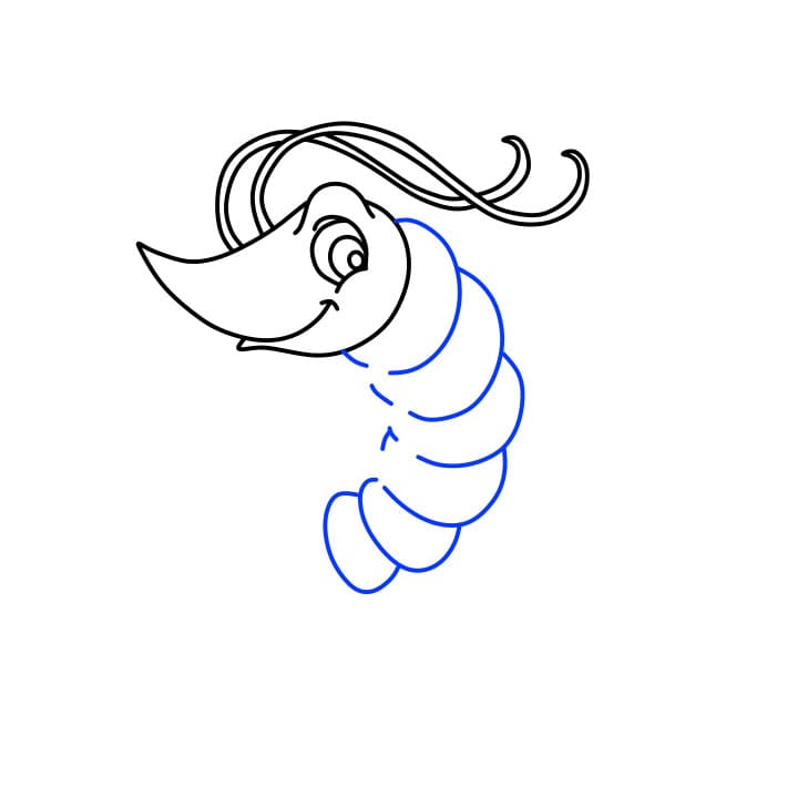 Passaggio 8: non dimenticare di disegnare una coda per i gamberetti