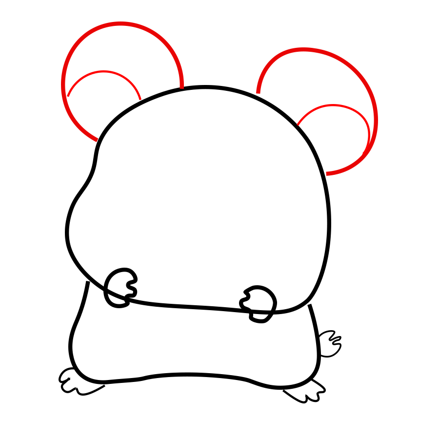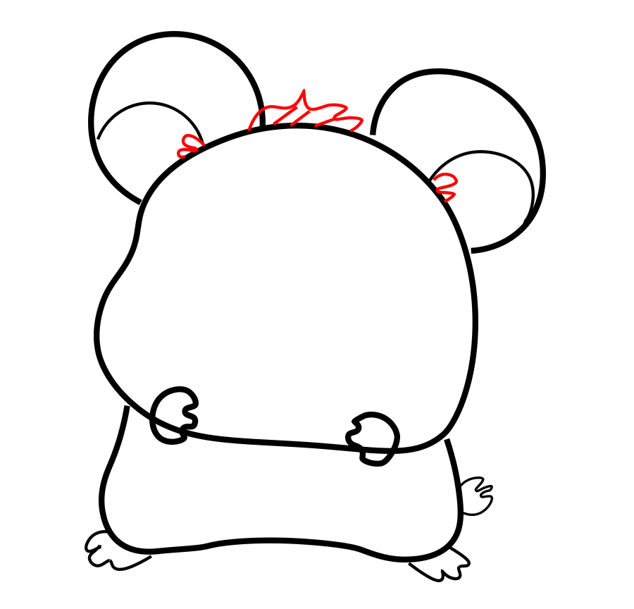 Quindi, disegna le zampe anteriori per l’hamtaro