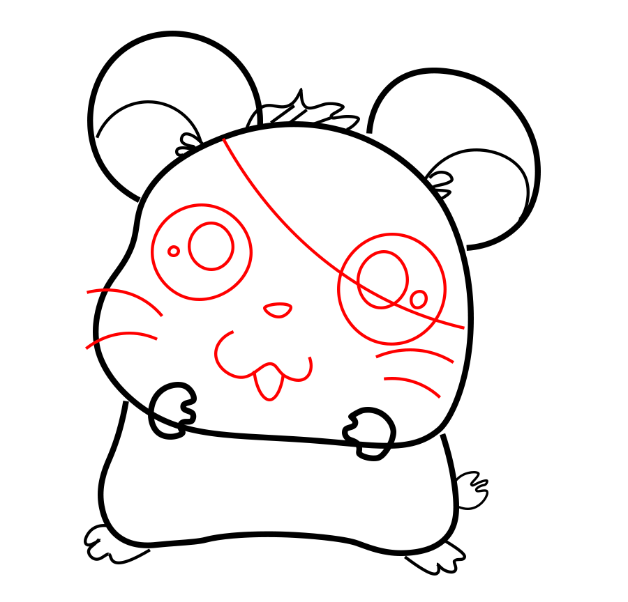Per prima cosa, disegna la testa per l’hamtaro