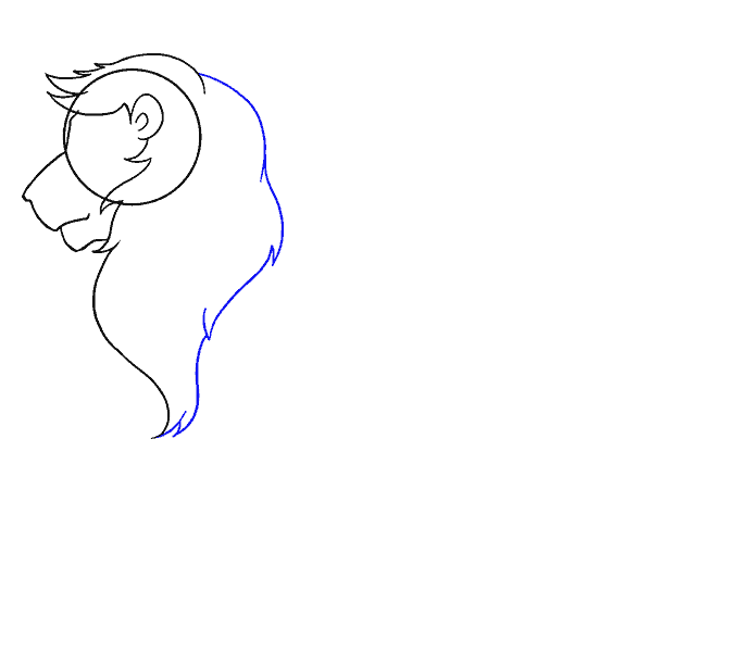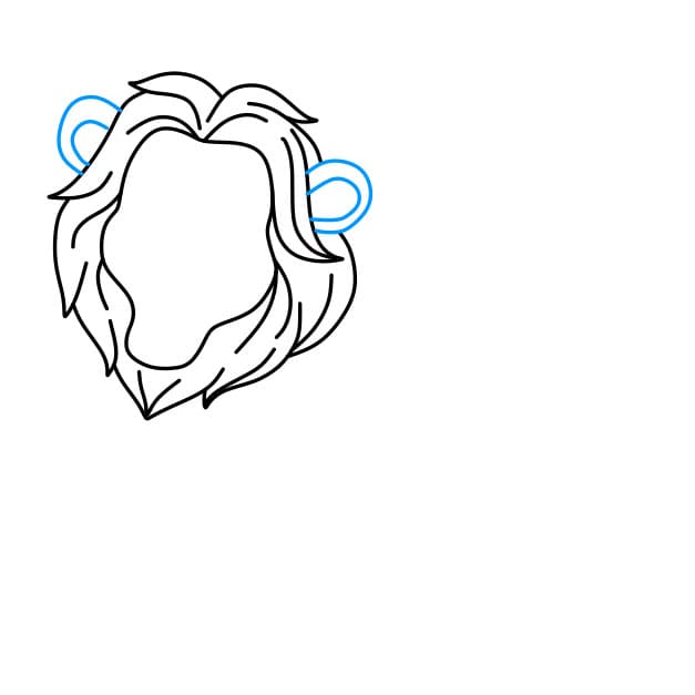 Disegna la criniera che si estende sopra le orecchie usando linee curve di varie lunghezze che si uniscono in punti frastagliati.