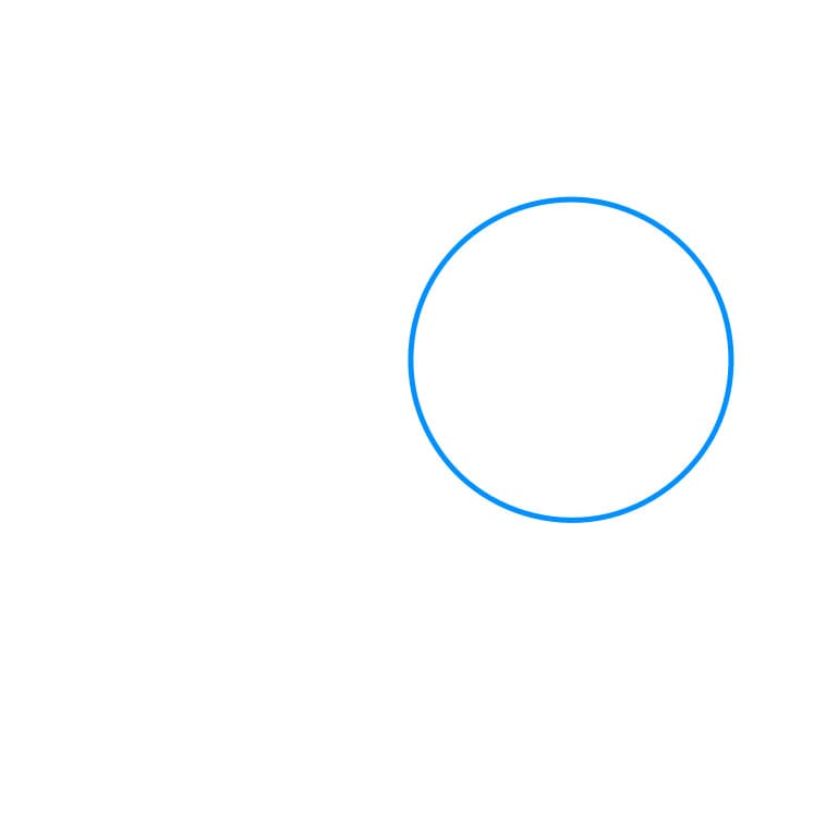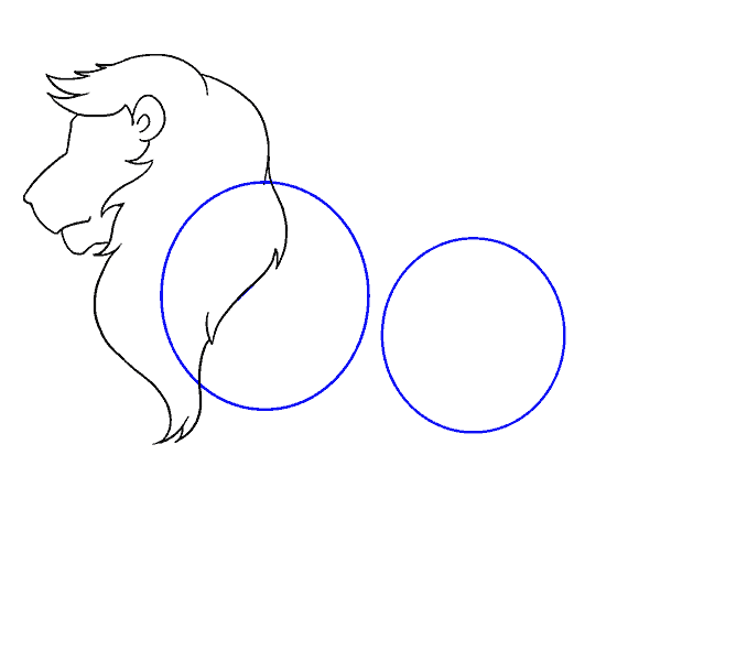 Disegna un cerchio che si sovrappone alla criniera. Disegna un secondo cerchio a destra del primo cerchio