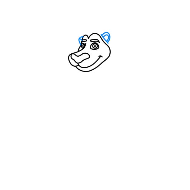 Disegna una serie di linee curve sotto le orecchie, che si incontrano in punti frastagliati