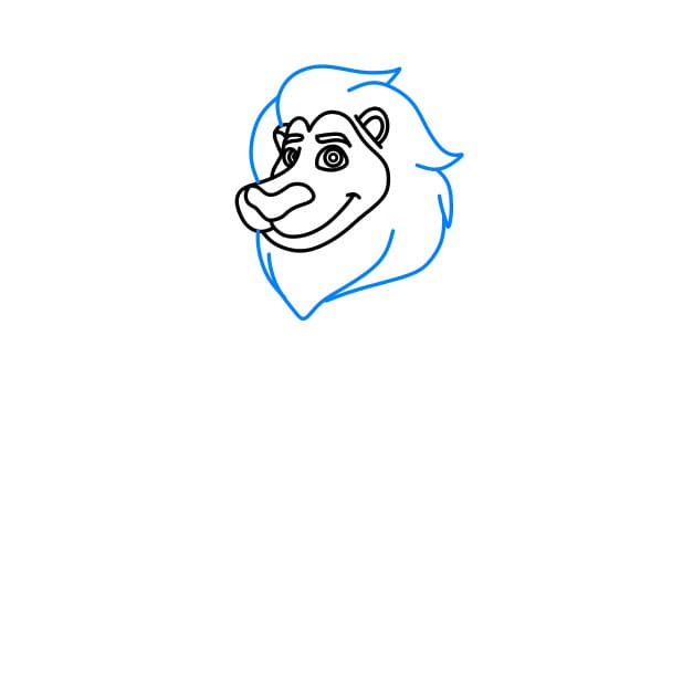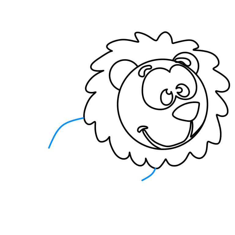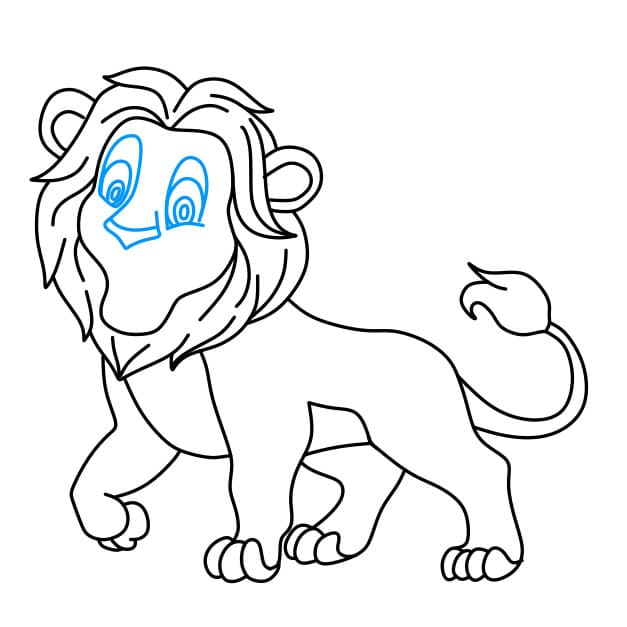 Quindi disegna gli occhi, il naso e la barba per il leone