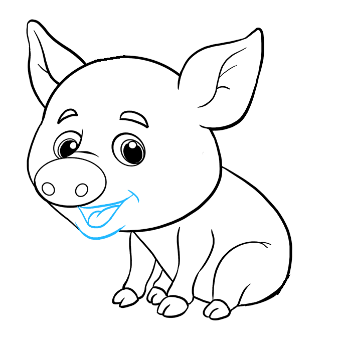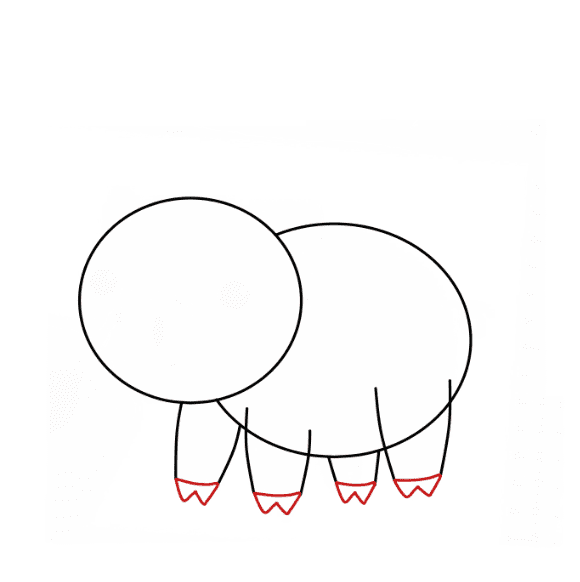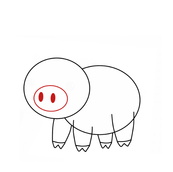 Disegna linee curve sotto il corpo per creare le zampe del maiale.