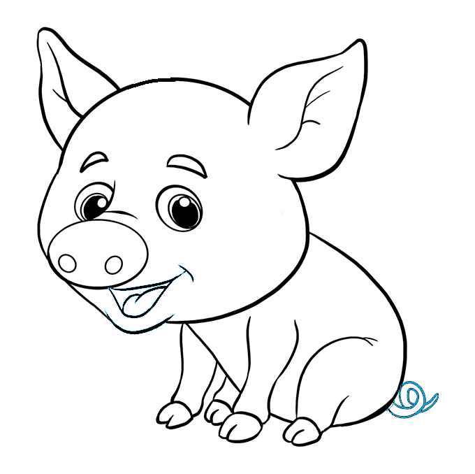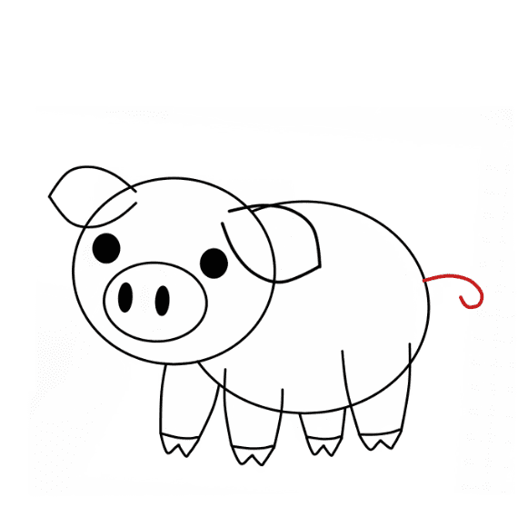 Non dimenticare di disegnare la coda del maiale.