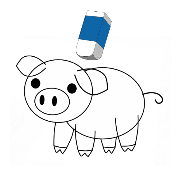 Usa la gomma / cancella tutto l’eccesso per completare l’immagine del maiale!