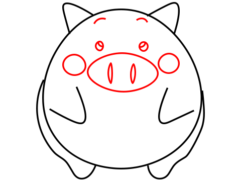 Per prima cosa, disegna la testa del maiale
