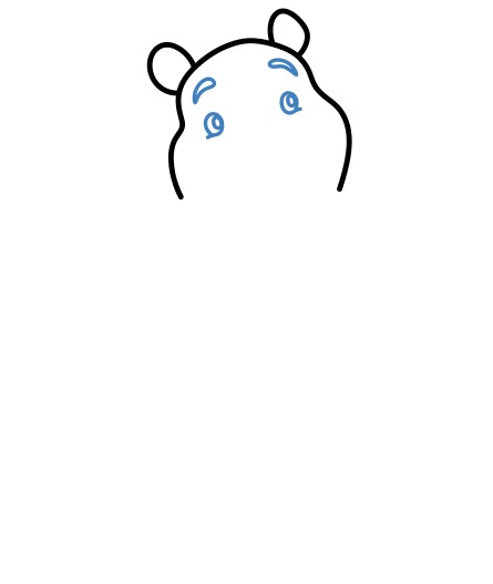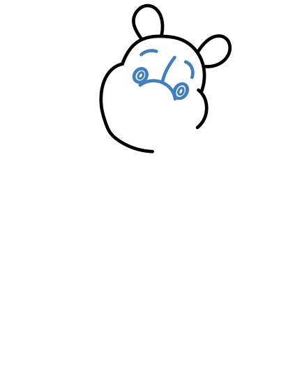Disegna due occhi piccoli e rotondi, due sopracciglia e il ponte del naso.