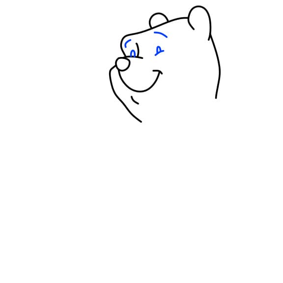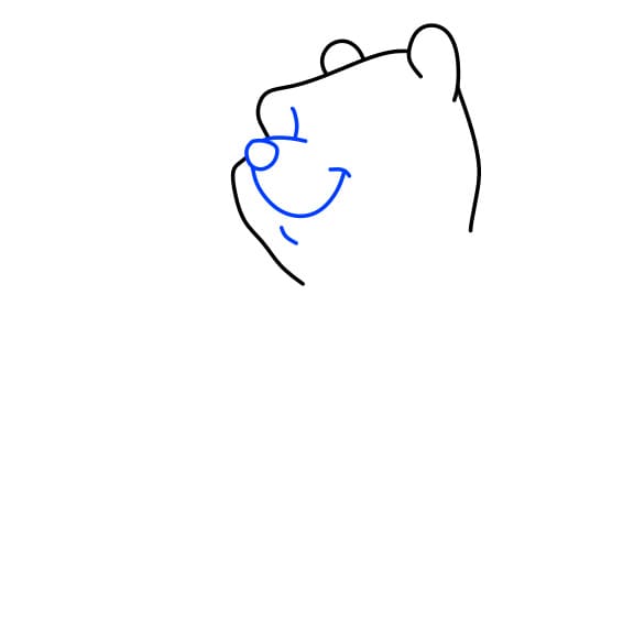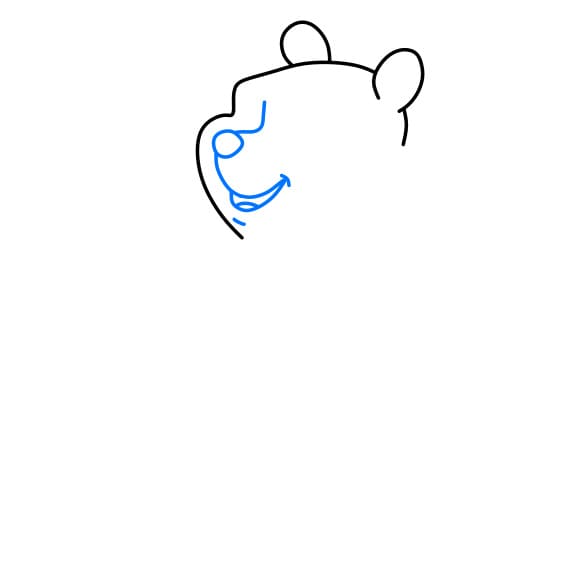 Passo 1: Innanzitutto, disegna la bocca e il naso per l’orso