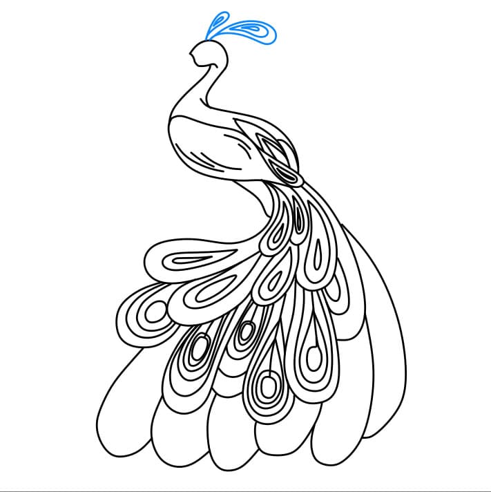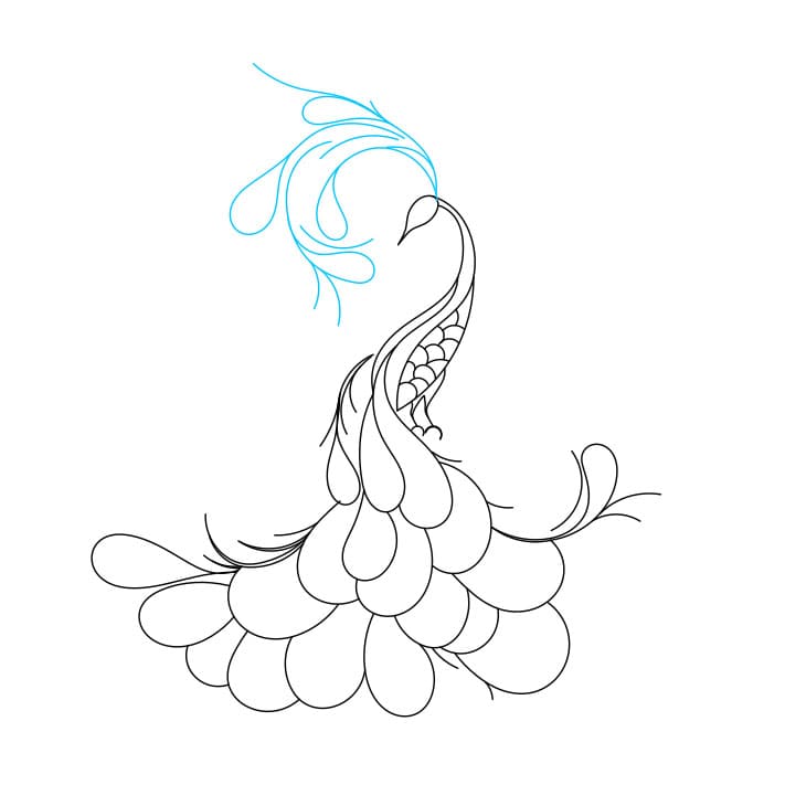 Passaggio 7: disegna la cresta sopra la testa del pavone