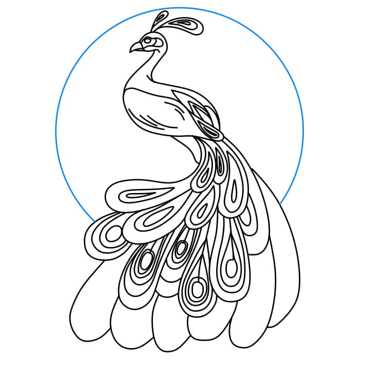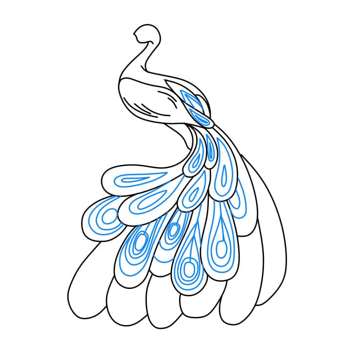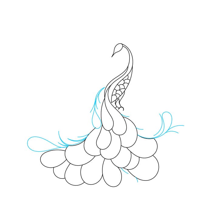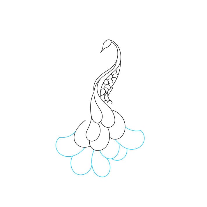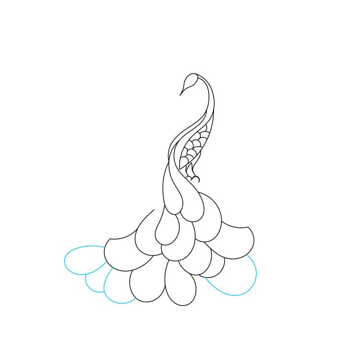 Passaggio 5: dai un’occhiata da vicino ai seguenti passaggi per disegnare la coda per questo pavone