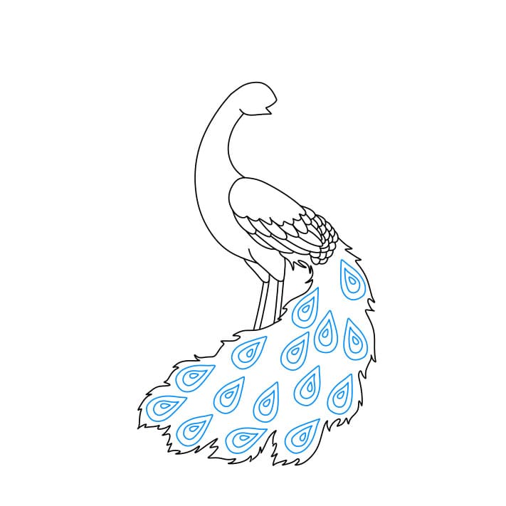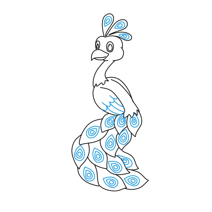 Passaggio 9: disegna maggiori dettagli sul piumaggio del pavone