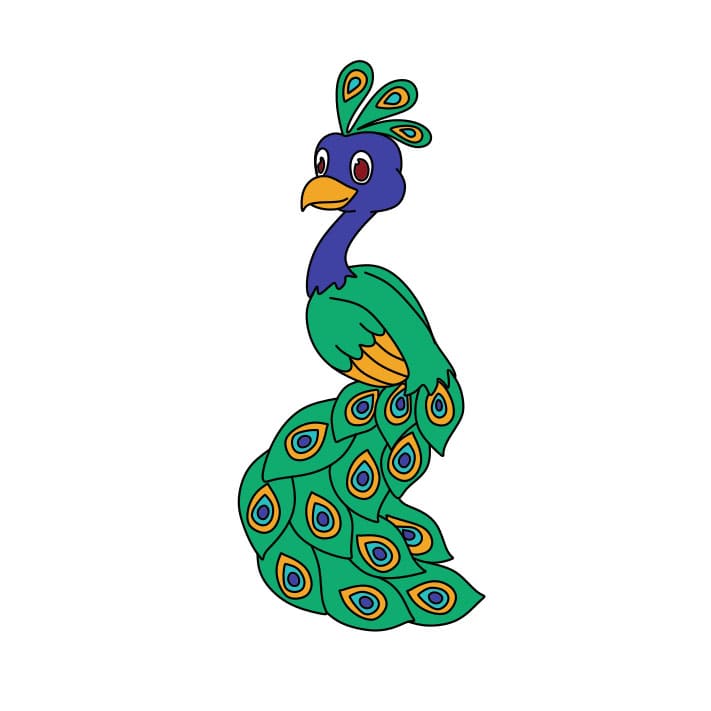 4. Istruzioni di disegno del pavone semplici e belle per i bambini