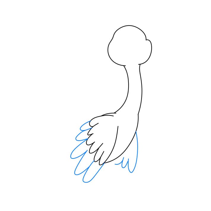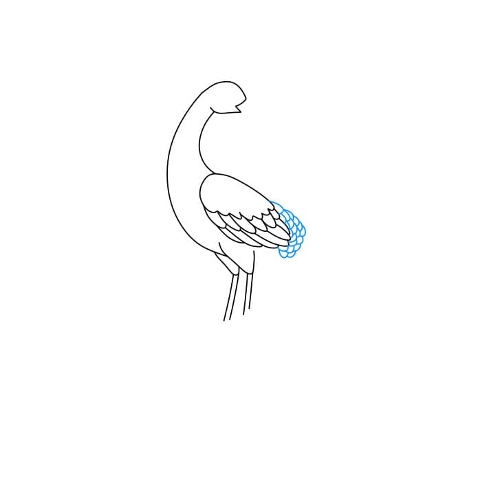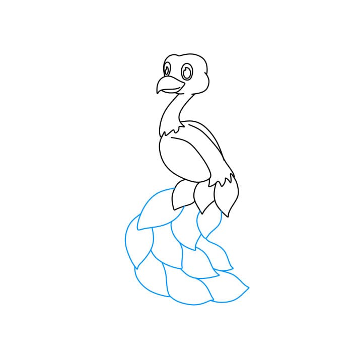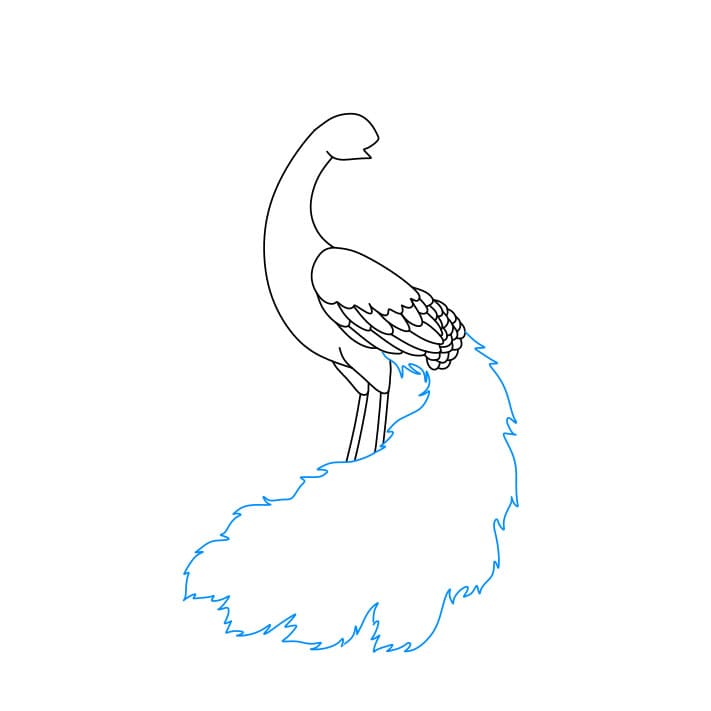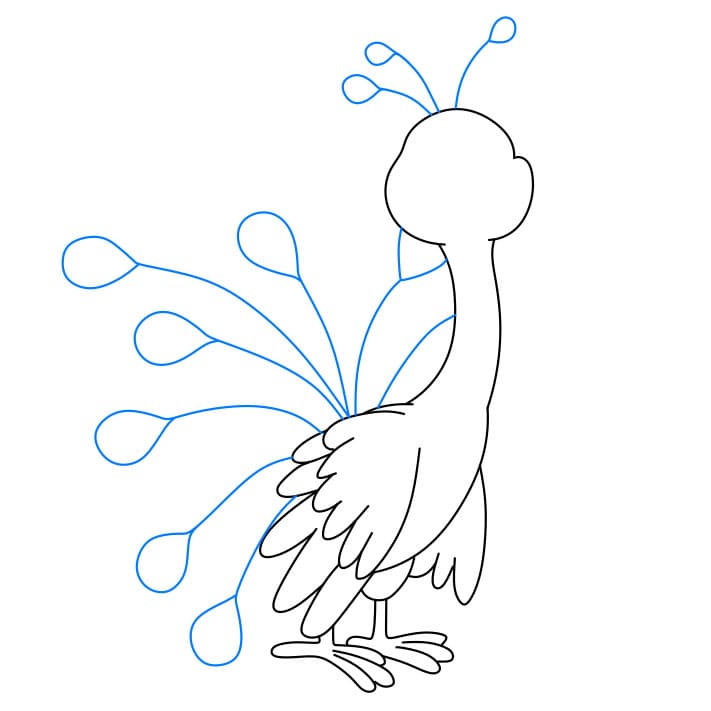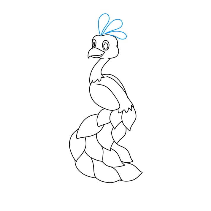 Passaggio 6:  disegna le penne della coda e le piume sulla testa