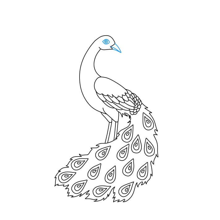 Passaggio 7: disegna gli occhi e il becco del pavone