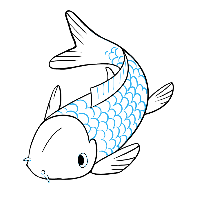 4.Come disegnare un divertente pesce Koi