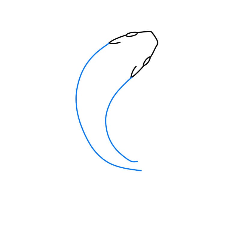 Per prima cosa, disegna una linea curva come il corpo del pesce