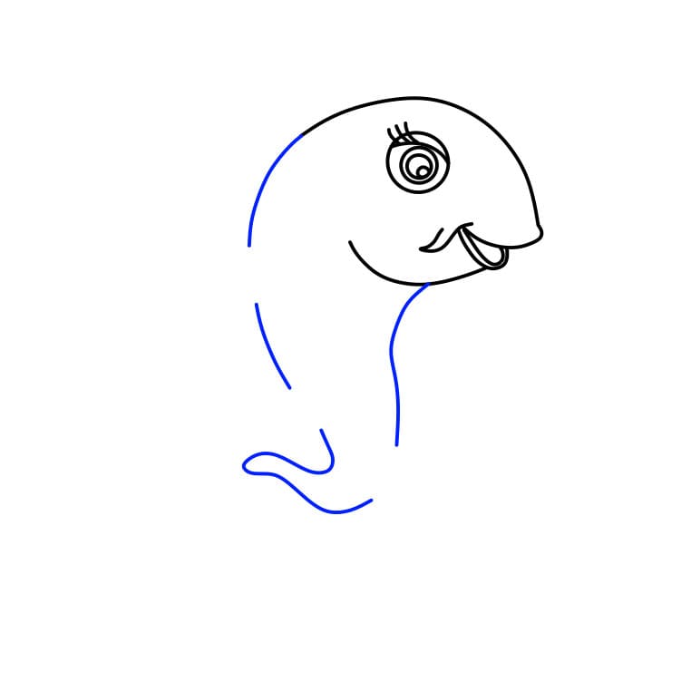 Quindi, disegna 2 linee curve per creare il corpo del pesce