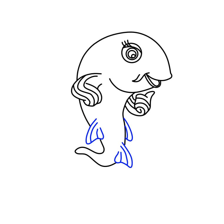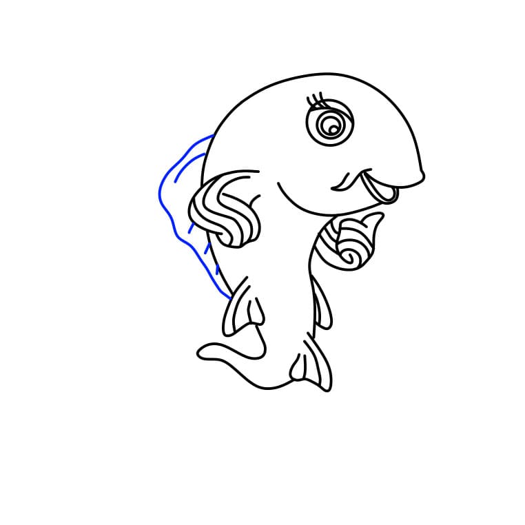 Successivamente, disegna qualche dettaglio in più sulle pinne