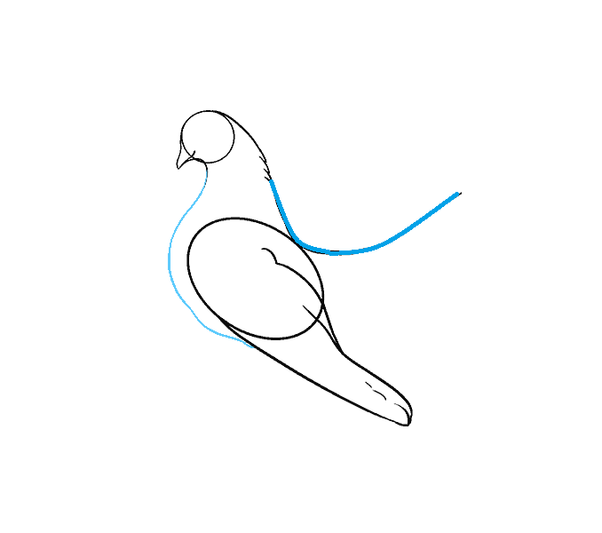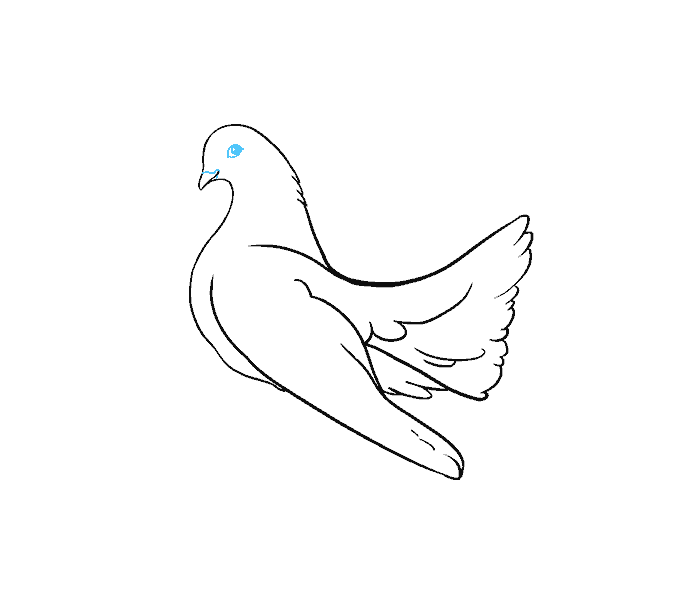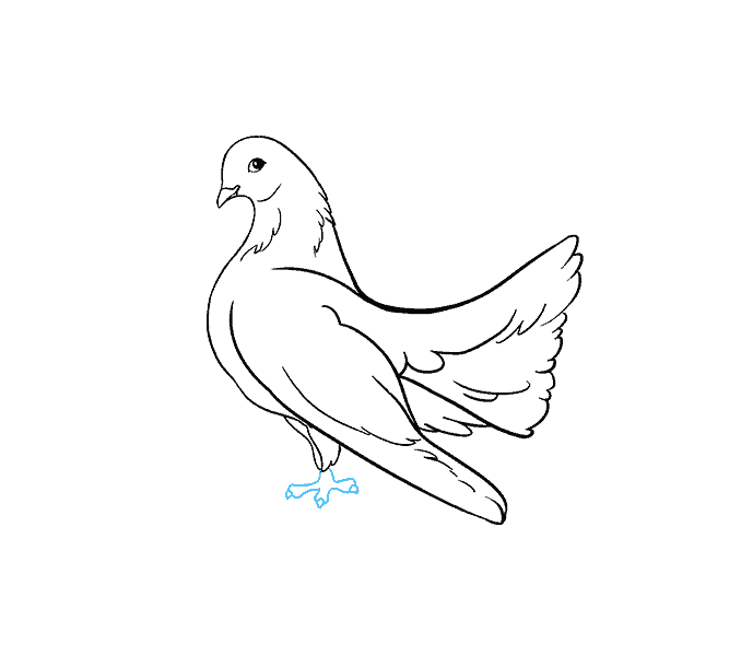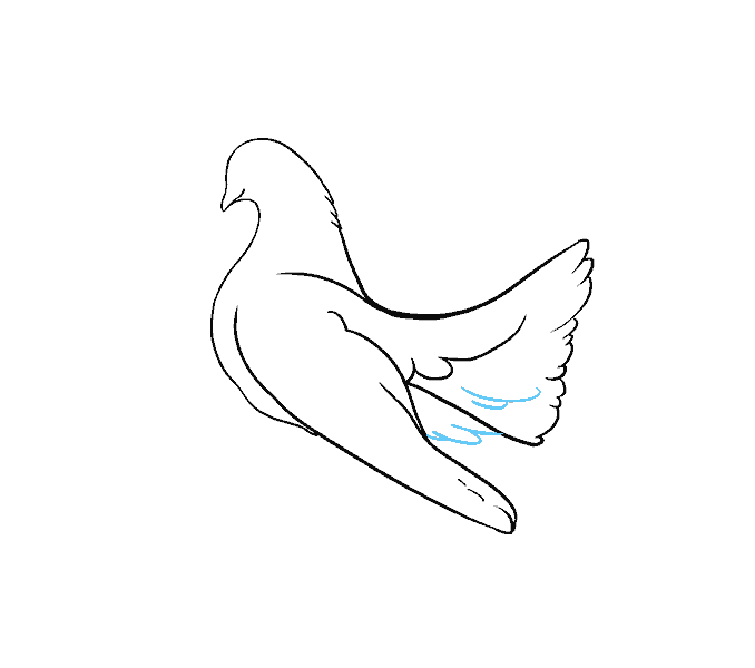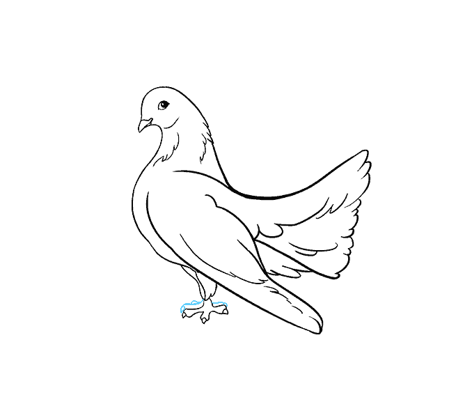 Quindi disegna alcune piccole curve per creare le ali, quindi abbiamo finito di disegnare un piccione.