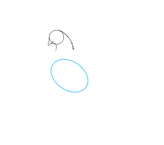 Disegna il contorno della testa e del collo dell’uccello, creando una forma generale per la parte superiore del corpo.