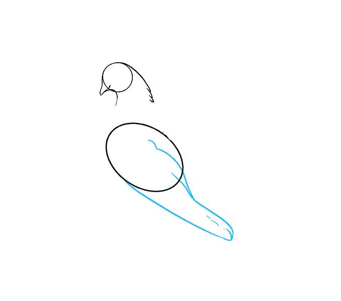 Disegna il corpo e la parte inferiore delle ali, creando una forma base per l’uccello.