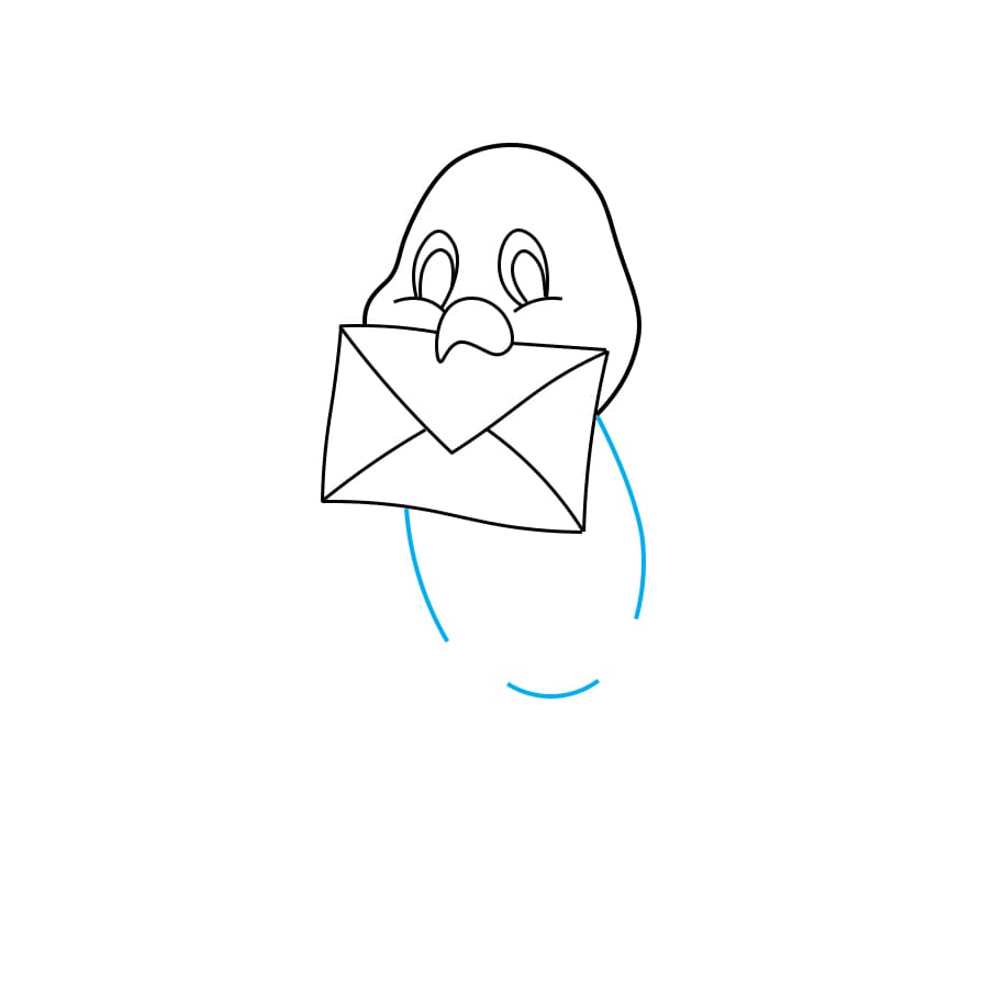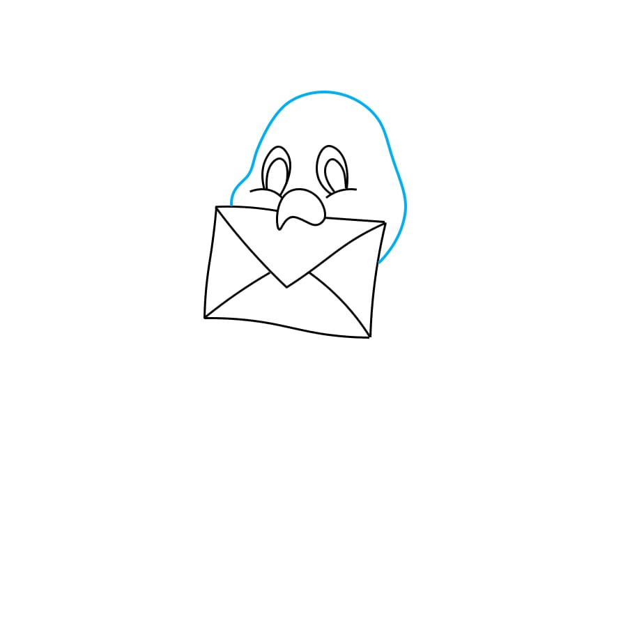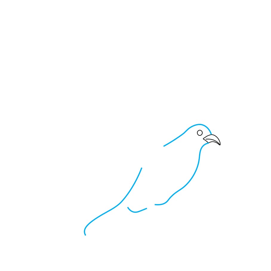 Disegna la testa e gli occhi dell’uccello, aggiungendo linee curve per modellare il collo.