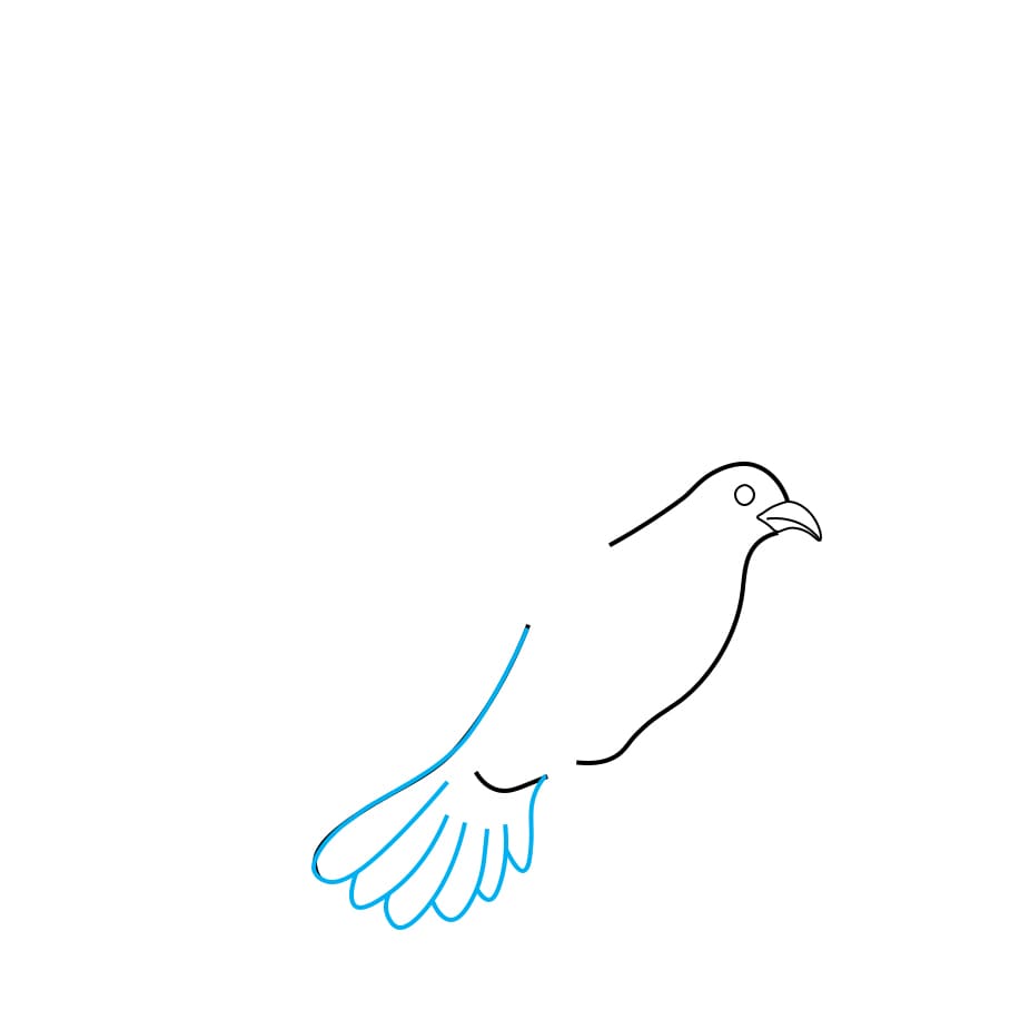Disegna l’ala anteriore, aggiungi dettagli alle penne delle ali per creare dettagli e distinguere gli strati di piume.