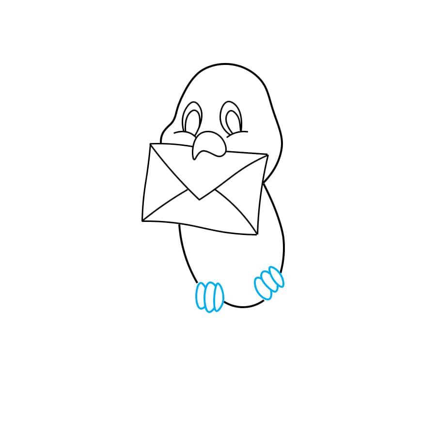 Disegna i piedi dell’uccello con le dita chiaramente definite.