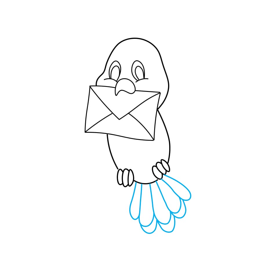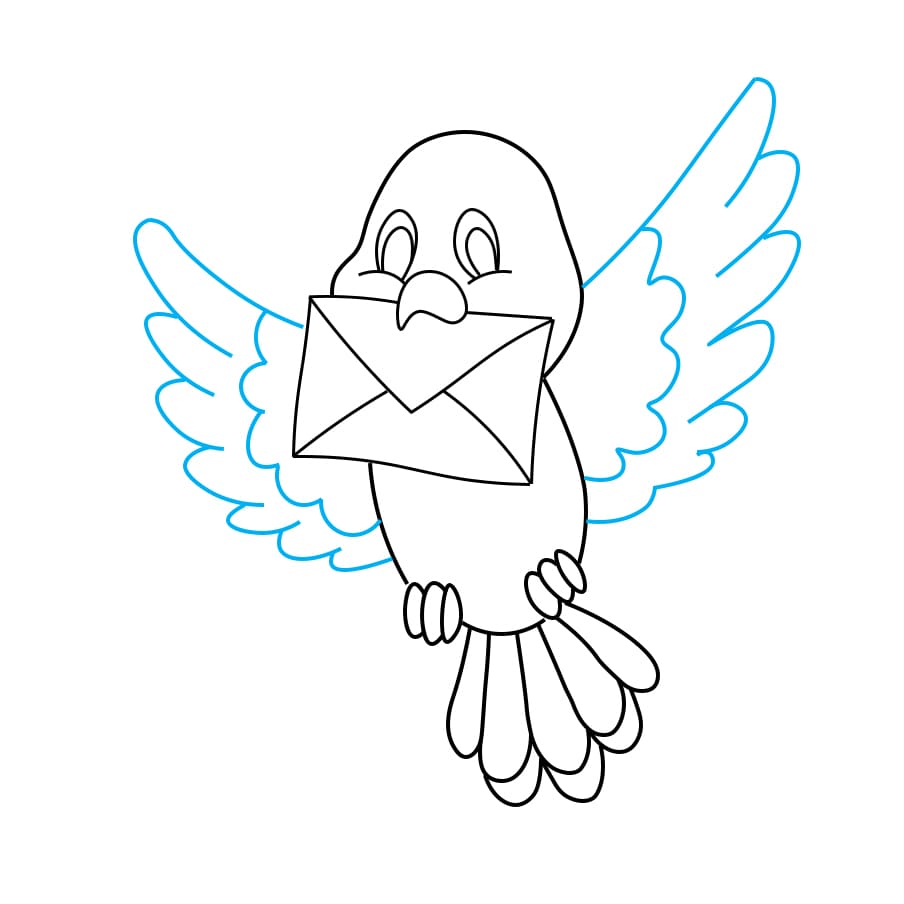 aggiungi dettagli di piume sulle ali disegnando piccole linee ondulate.