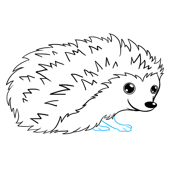 Disegna altre quattro piccole zampe sotto il corpo del riccio usando semplici linee curve.