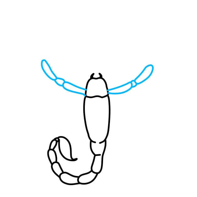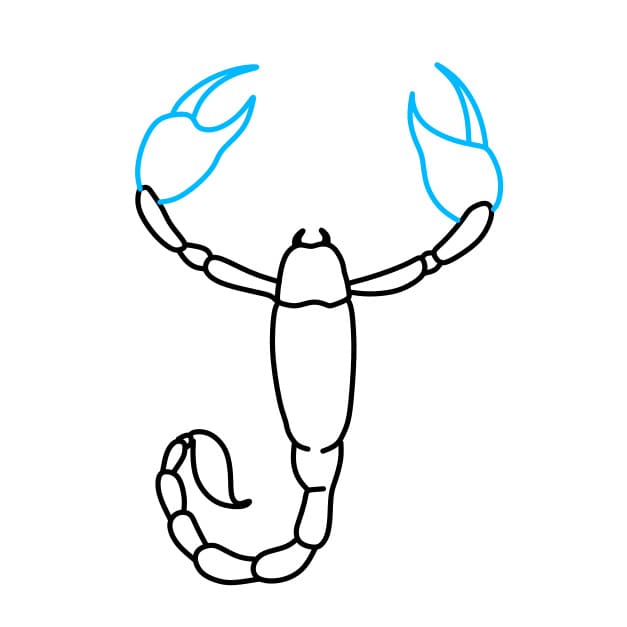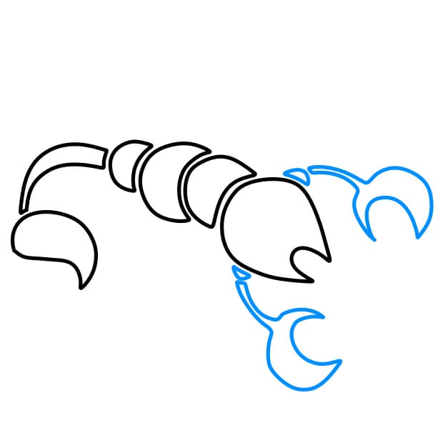 Passo 2: Successivamente, disegniamo altre due forchette di questo scorpione
