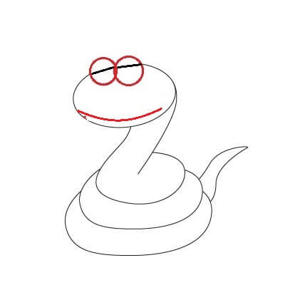 Disegna gli occhi e la lingua per il serpente