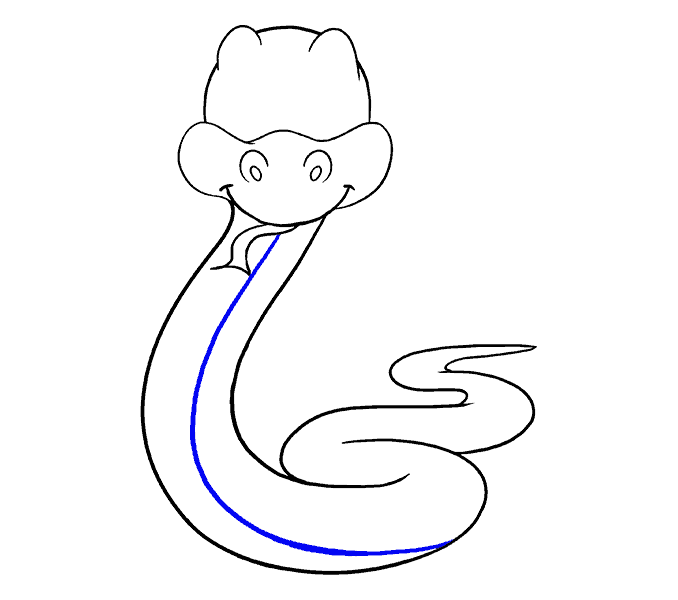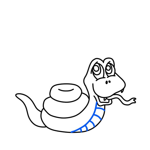 Passo 4: Disegna il corpo del serpente raggomitolato, sembra davvero accattivante, giusto